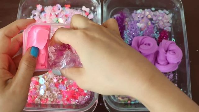 Смешиваем «розовые и лавандовые» тени и блёстки в слайм! Увлекательное видео со слаймом!★ASMR★