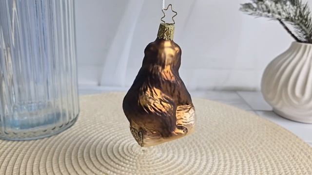 Ёлочная игрушка МЕДВЕДЬ И МАЛИНА, стекло, 10 см, 10201S015