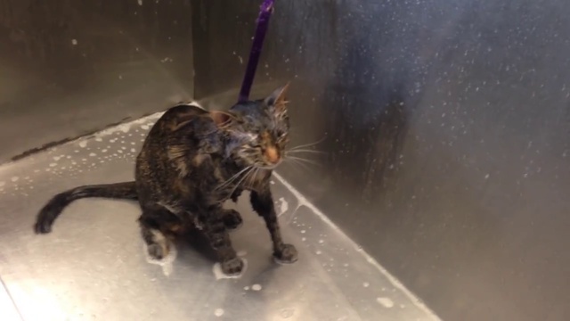 Котик протестует и требует, чтобы его больше не купали.