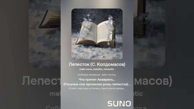 Мелодия романтики. Текст - С. Колдомасов Аудио и визуал - Suno AI Стихи: Сергей Колдомасов - "Лепесток" (2020/08/01) (на сайте стихи.ру). Никакой вульгарщины или пропаганды, все совпадения чисто совпадения!