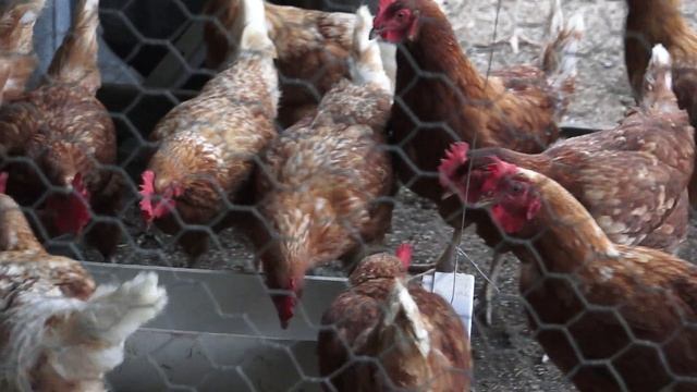 Куры пьют водичку из поилки