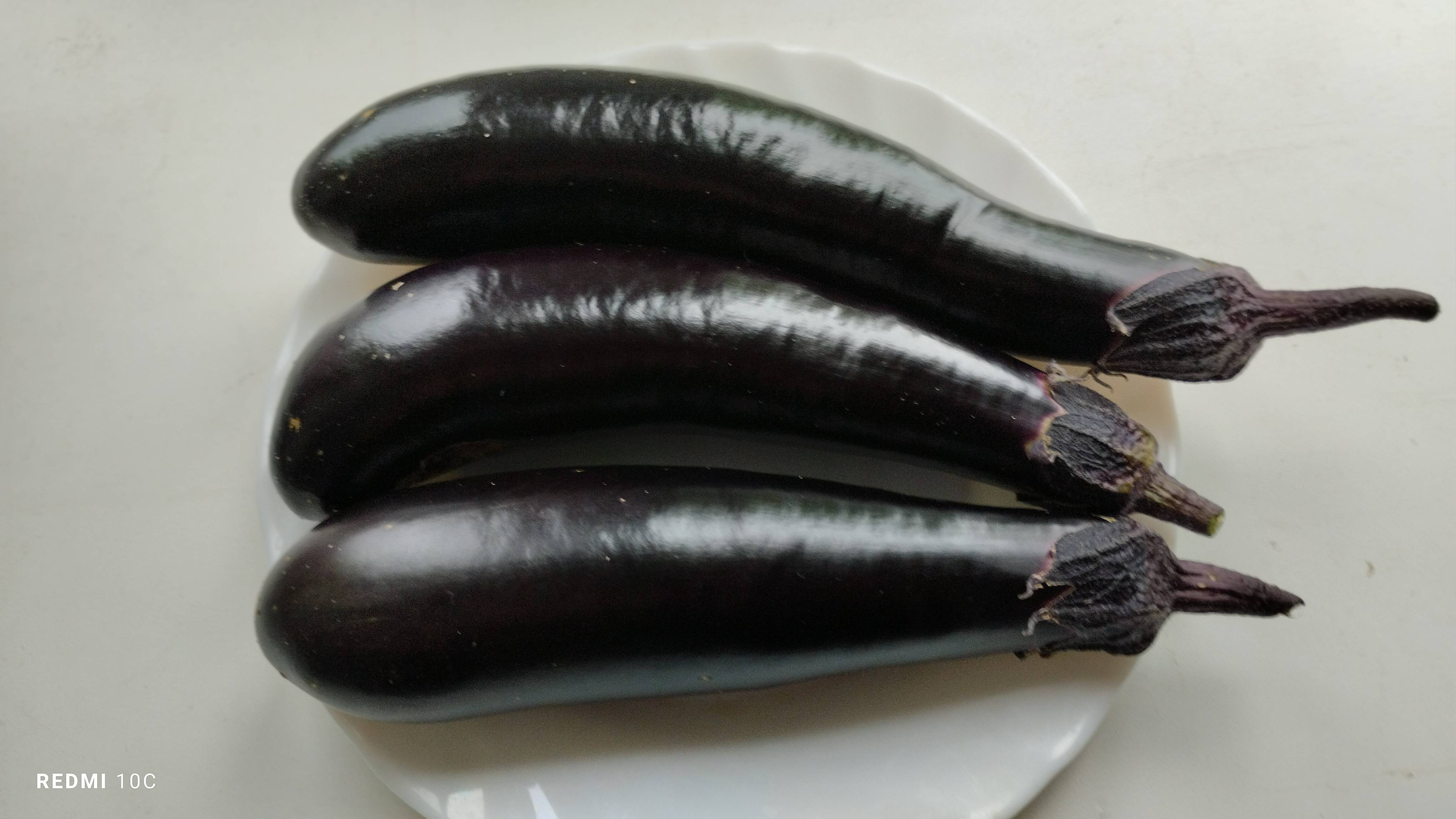 Сегодня, 28 июня сорвала у нас в саду первые три баклажана.