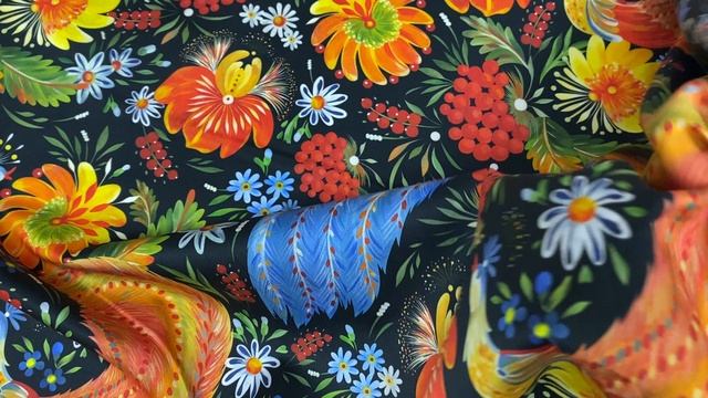 Хлопок черного цвета с жостовским принтом 16780