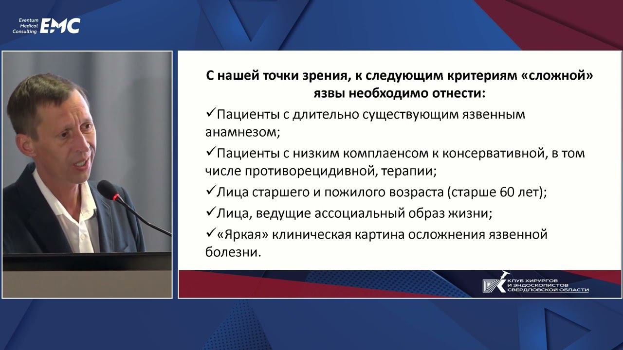 Хирургические проблемы лечения осложнений гигантских язв желудка и ДПК. Особенности эпидемиологии, диагностики и лечения. НКР. Собственный опыт Деревянко Евгений Валентинович, заместитель главного врача по хирургии ГАУЗ СО ГКБ №14, г. Екатеринбург