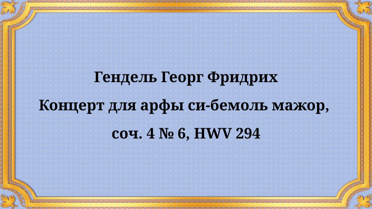Гендель Георг Фридрих Концерт для арфы си-бемоль мажор, соч. 4 № 6, HWV 294