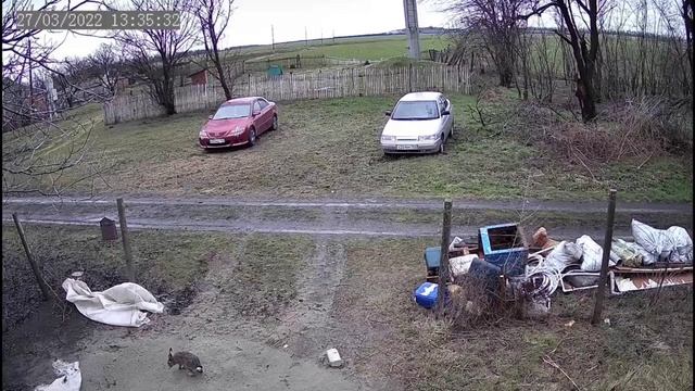заяц из леса прибежал .С камер видеонаблюдения
