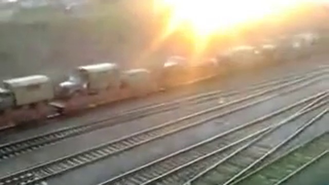 В Славянске 2 апреля 2016 года была зафиксирована большая колонна военной техники, которую железнодорожным составом перебрасывали в сторону Донецка.