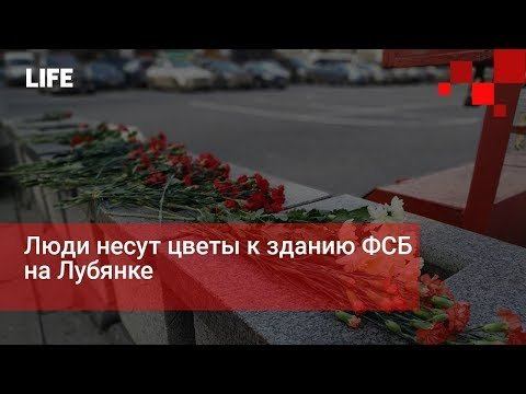 Люди несут цветы к зданию ФСБ на Лубянке