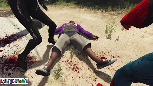 Женщина кошка и Спайдермен гоняются за преступниками на полицейском "УАЗике" и потом сильно с ними дерутся.
