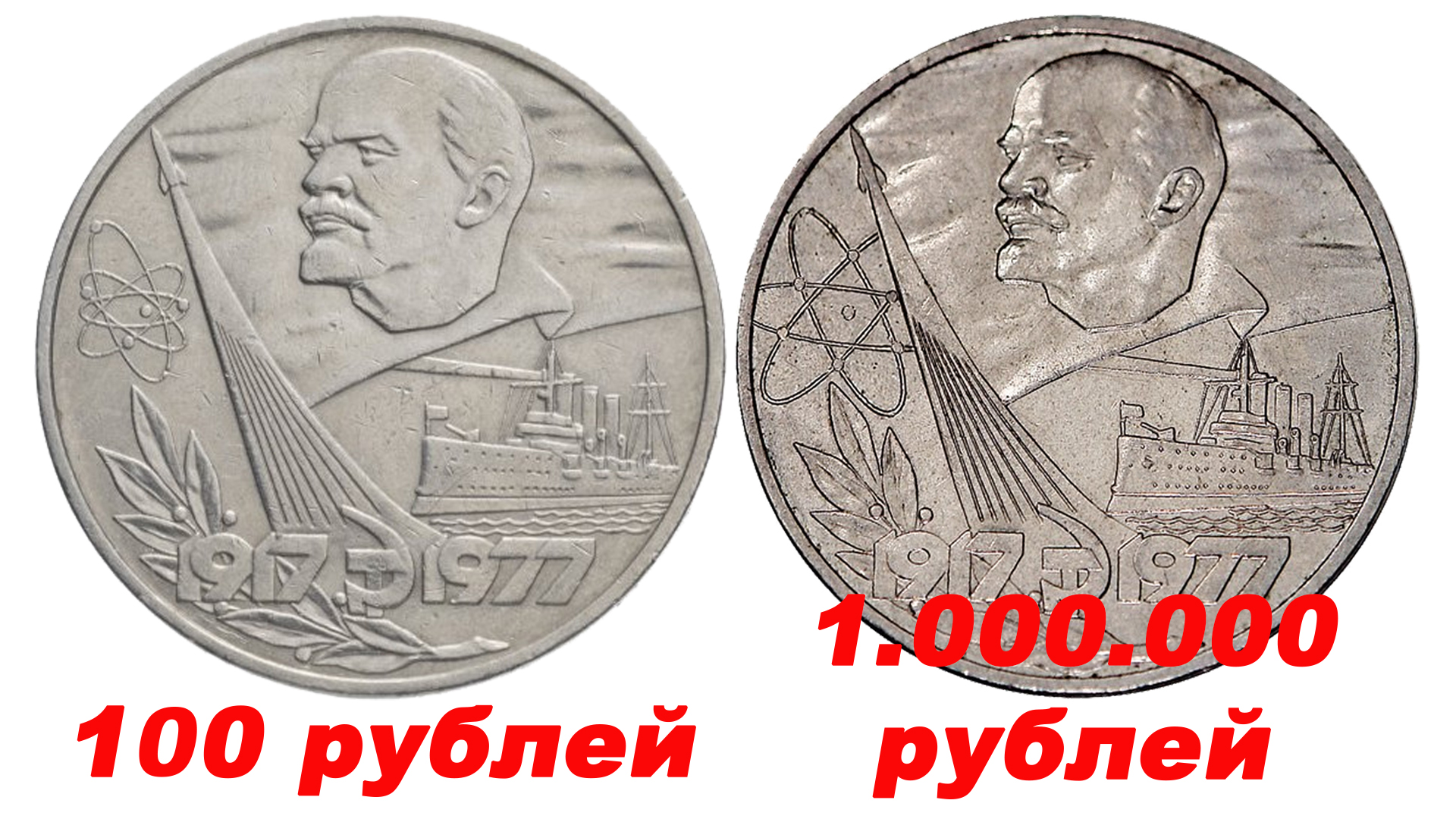 Юбилейный рубль СССР стоимостью больше 1000000 рублей. 60 лет Октябрьской Революции.