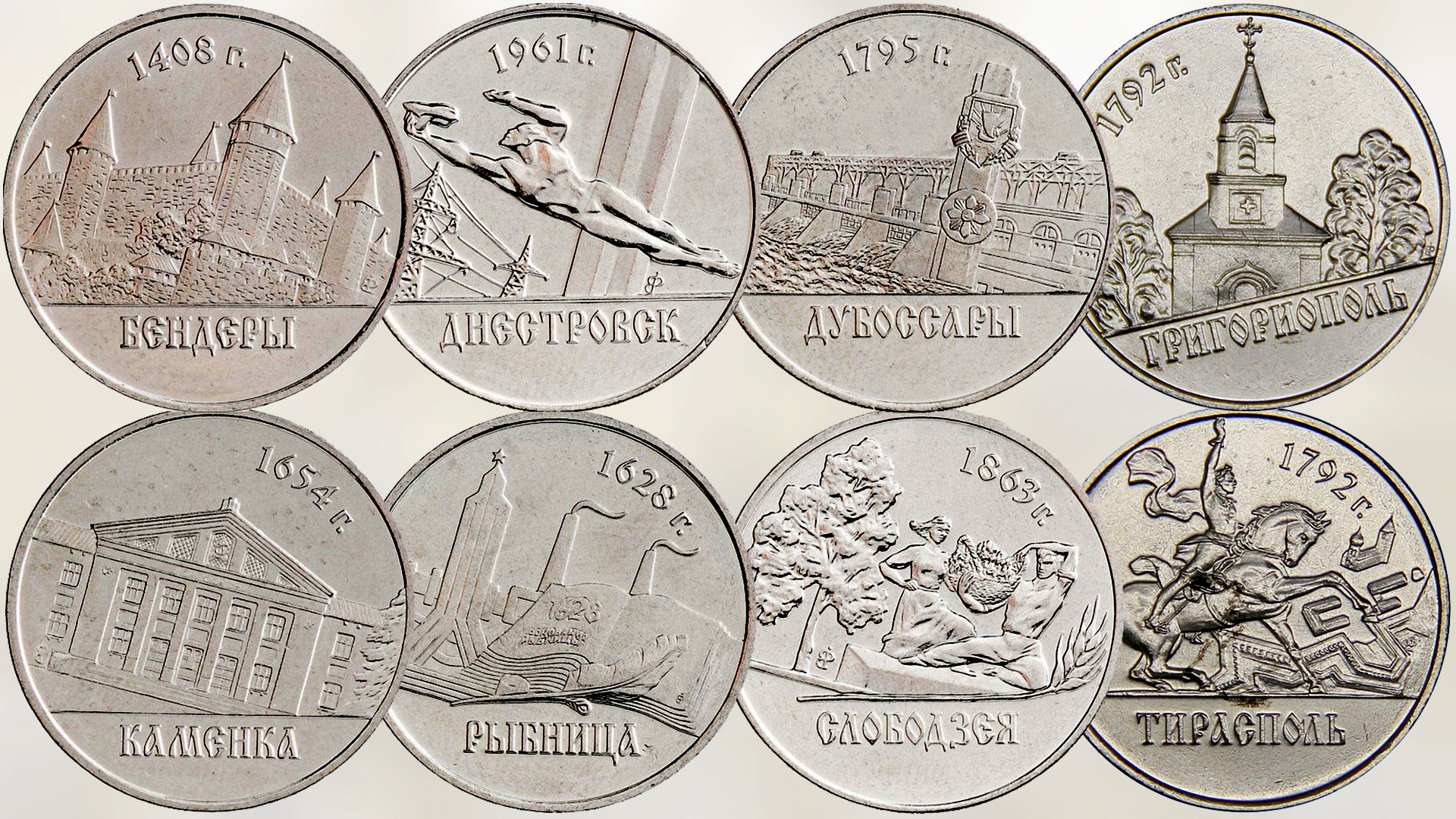 Серия монет ПМР Города Приднестровья выпуска 2014 года.