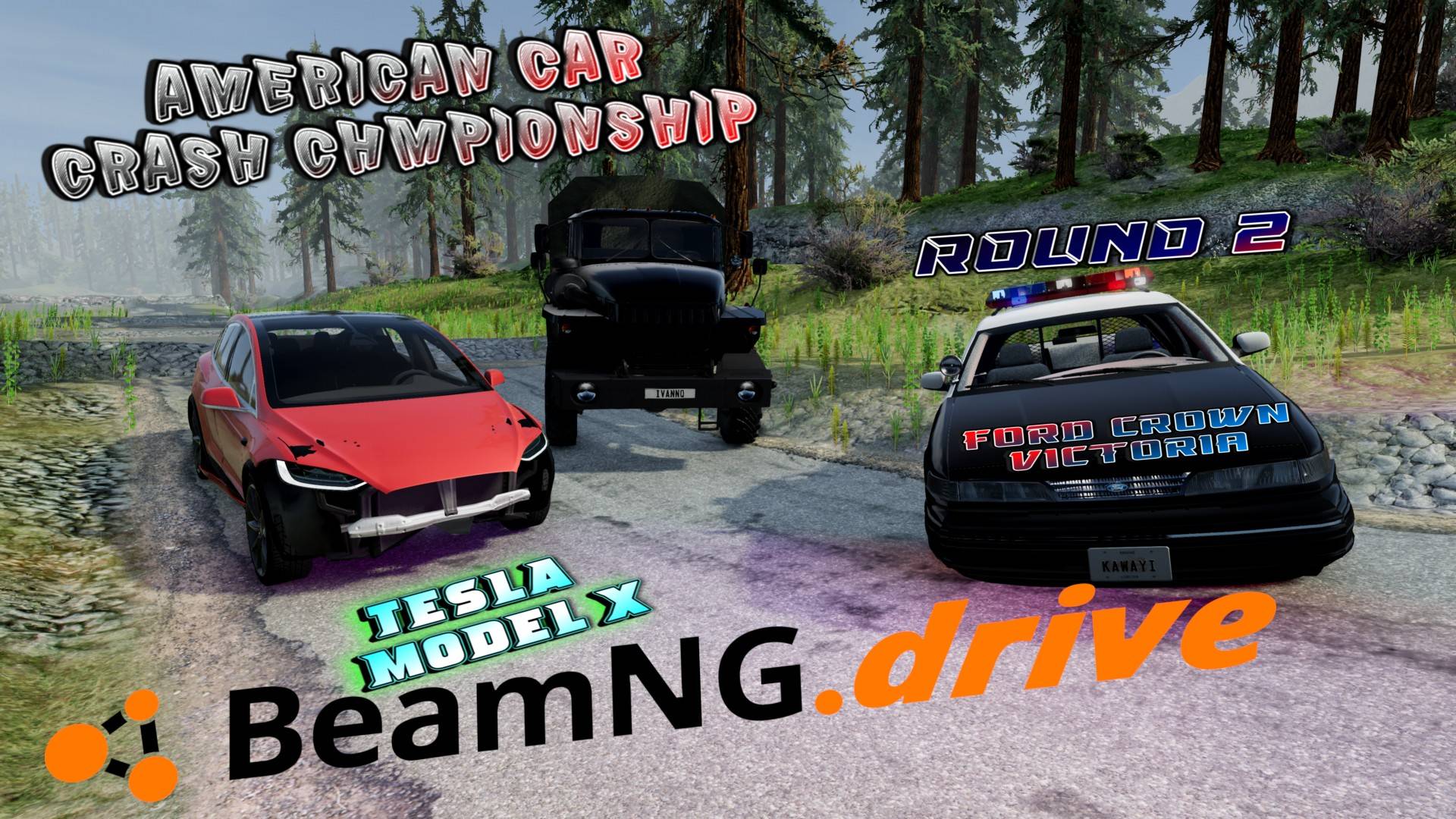 ROUND 2/TESLA MODEL X VS FORD CROWN VICTORIA/AMERICAN CAR CRASH CHAMPIONSHIP BEAMNG DRIVE/