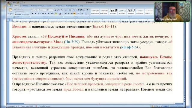 Бытие 6 гл. Ковчег, потоп начался. Ведущий Игорь Владимирович 12.05.2025