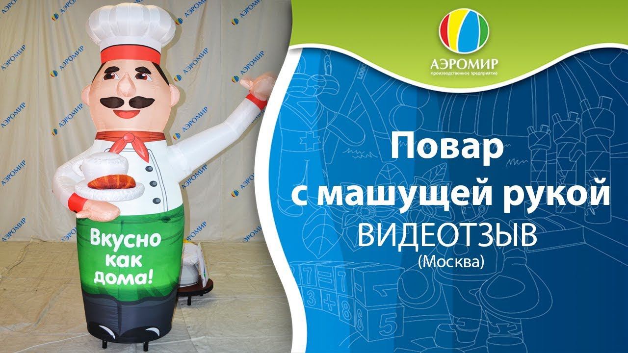 Надувная фигура Повара с невероятным эффектом машущей рукой. Друзья, хотите продавать больше? Увеличить прибыль от Вашего бизнеса на 10-50%? Тогда Вам к нам! Мы регулярно получаем фото и видеоотзывы от наших довольных клиентов со словами благодарности, тысячи клиентов стали нашими постоянными партнерами. Это видео из города Москва, где для одного из ресторанов мы сделали надувного повара-зазывалу. От клиентов нет отбоя. Такая реклама не только эффективный способ привлечения клиентского внимания, но и уникальная фотозона. А с распространением селфи, соцсетей и интернета фото, сделанные на ней, непременно обратят на себя внимание, что станет для Вас бесплатной отличной рекламой. _________________________________________ Надувные зазывала: https://clck.ru/gw7Dp Тел.: +7 (499) 490-78-92 Тел.: +7 (343) 302-17-62 Сайт: https://airmir.ru/ E-mail: sale@airmir.ru Вконтакте: https://vk.com/airmir_ru Одноклассники: https://ok.ru/airmir