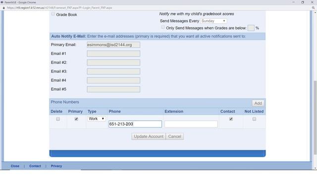 Update contact information in ParentVUE