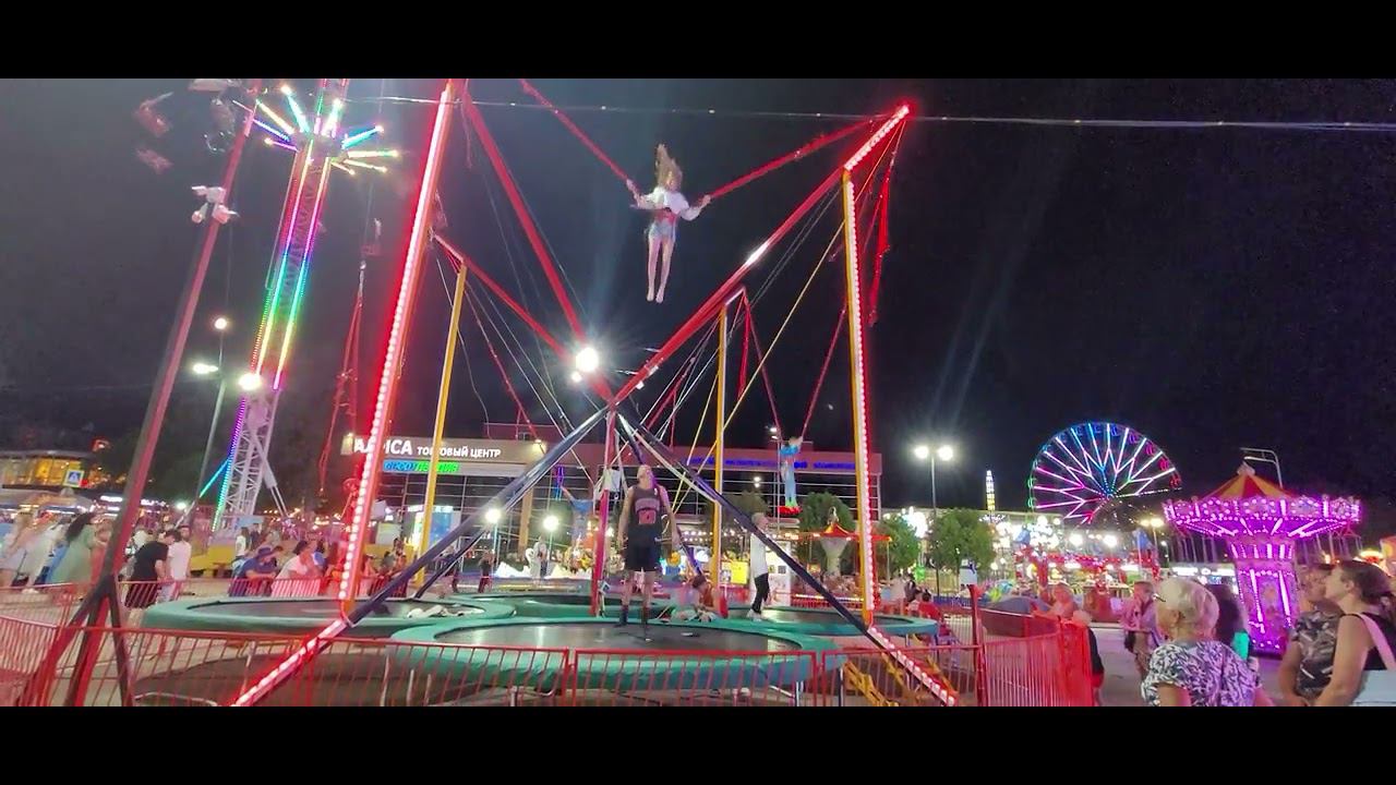 В Анапе очень много аттракционов для детей разного возраста. И все они разбросаны. На видео засняты только несколько, находящихся рядом .Большой популярностью пользуется прыжки на батуте .К нему нет очереди только днем .