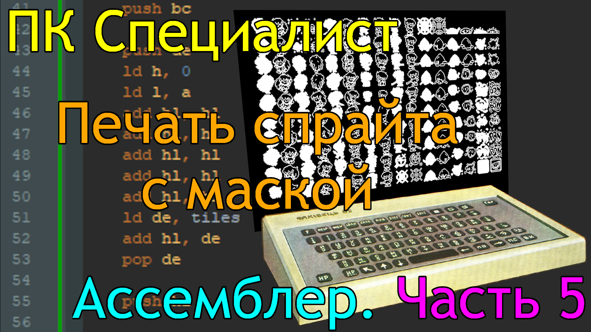 В этой части печатаем спрайт с маской. Все файлы из данного видео находятся здесь: https://github.com/CityAceE/specialist_assembly/tree/main/Part_05 Инструменты: SjAMSPlus: https://github.com/z00m128/sjasmplus Emu80: https://www.emu80.org/ Это же видео на других площадках: https://www.youtube.com/@CityAceE https://rutube.ru/channel/24637489/ https://dzen.ru/cityacee https://vk.com/video/@CityAceE