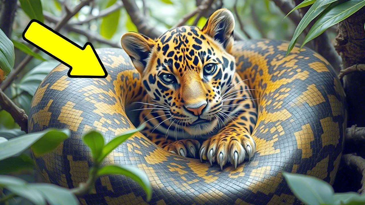 Драма в джунглях питон против детёныша ягуара. Но посмотрите, кто вмешался в это!