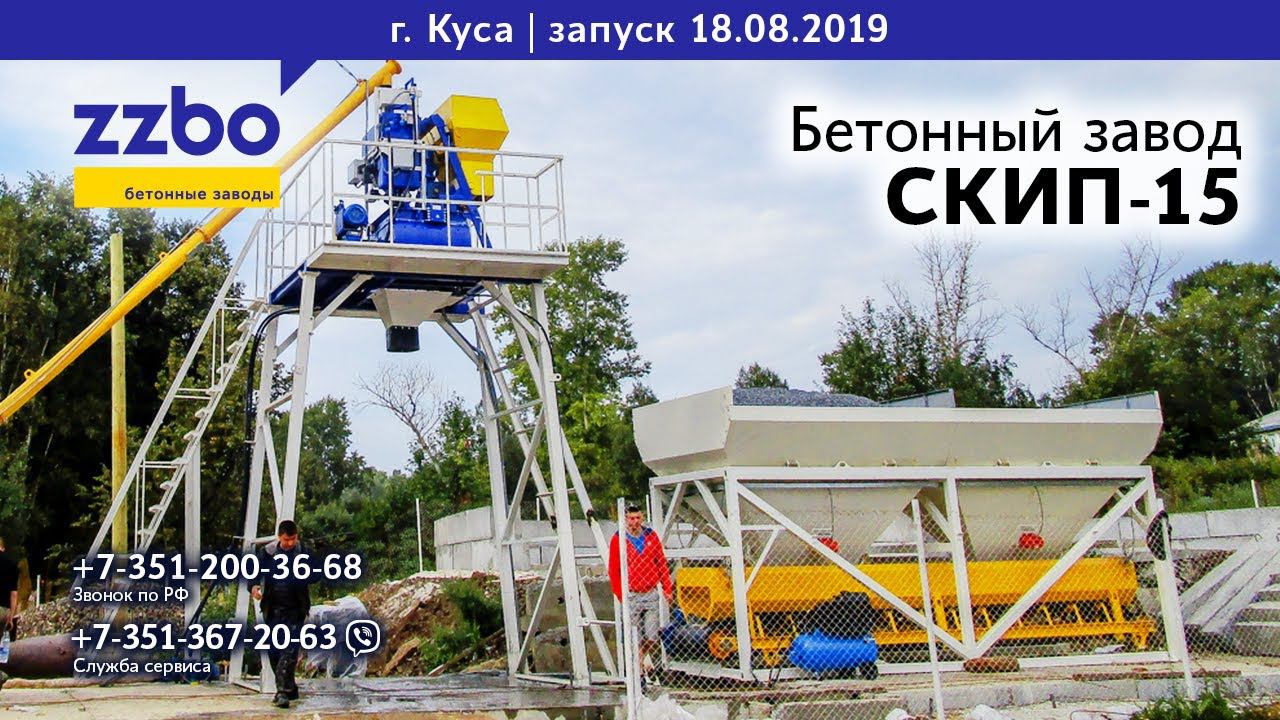 Запуск бетонного завода СКИП-15 для реконструкции плотины в Кусе