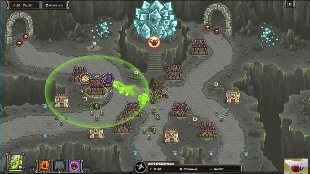Kingdom Rush Frontiers (Ветеран) → Янтарные Глубины - Кампания (New) - Арбалетчики vs Умбра