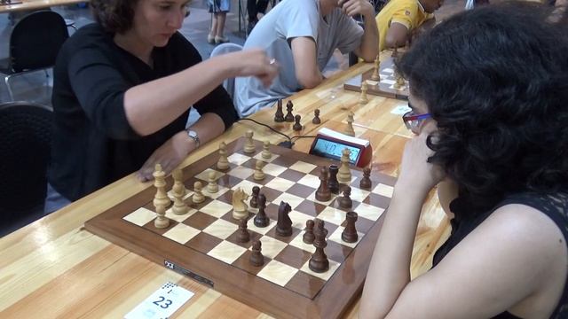 The position on board remain unclear, Black advance on the kingisde is definitely two fold as they have space to move pieces towards white king but at the same time lack coordination. White is epirincing problems and with couple of exchanges obtain better chances. Still White has weak king. Gagare Shalmali - Dana Reizniece ozola, RTU Rapid, 2019, Riga