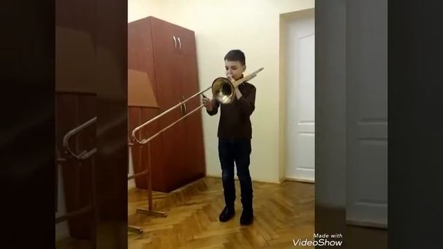 Мой младший брат играет на трубе.