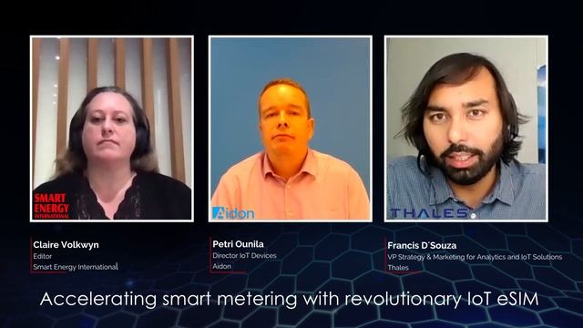 For smart meter vendors serving multiple countries and rollouts, a single connectivity solution that can be deployed on any cellular network, anywhere in the world, would greatly simplify smart meter design and deployment. Utilities investing in smart meter roll outs need cost effective and highly reliable connectivity solutions - while having the technical and commercial flexibility needed across the long life span of 10-15 years typical of a smart meter. Two experts in the field - Petri Ounila, Direct IoT Devices at Aidon and Francis D´Souza, VP Strategy & Marketing for Analytics and IoT Solutions at Thales – share their insights. Want to know more? Listen to the podcast here: https://www.smart-energy.com/resources/podcasts/episode-6-accelerating-smart-metering-with-revolutionary-iot-esim/