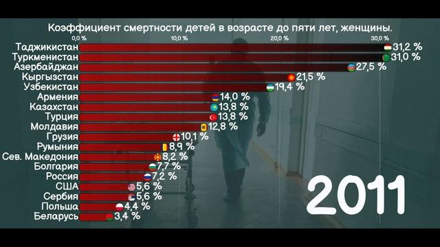 Коэффициент смертности детей в возрасте до пяти лет, женщины.2000-2021.На каком месте Россия?[ИНФО].