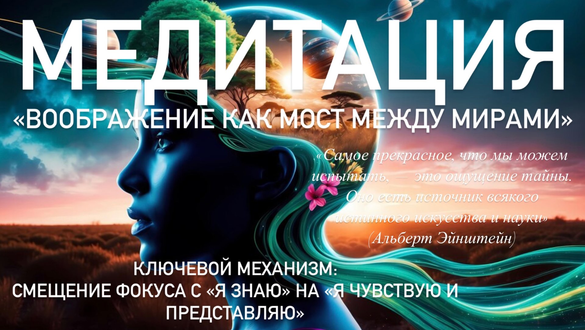 **«Сад Воображения: Медитация для пробуждения творческого потока»** --- ### **Поза:** Лежа на спине, с расслабленными руками и ногами, слегка разведенными в стороны. Поза «звезды» или «раскрытого цветка» позволяет максимально ощутить контакт с опорой и снять напряжение. Эта медитация — путешествие в пространство тела и воображения, где границы между физическим и метафизическим растворяются. Через наблюдение за ощущениями, метафоры (корни, звездная пыль, облака) и открытые вопросы вы исследуете, как творческое мышление расширяет восприятие реальности. Практика помогает пережить идею: *воображение — это инструмент, который превращает ограничения органов чувств в бесконечные возможности*. --- ### **Как часто делать:** - **Для новичков:** 2–3 раза в неделю, чтобы интегрировать метод в повседневность. - **При творческом кризисе:** ежедневно 5–7 дней подряд как «интенсив». - **Для расслабления:** 1–2 раза в неделю перед сном. Длительность: 15-20 минут. --- ### **Чем полезно:** 1. **Активирует творчество** — переводит мозг из режима «шаблонов» в состояние игры и спонтанности. 2. **Снижает тревогу** — через фокус на теле и дыхании возвращает в «здесь и сейчас». 3. **Укрепляет связь с телом** — учит слышать его сигналы как источник вдохновения. 4. **Расширяет восприятие** — показывает, как воображаемые образы влияют на физические ощущения. 5. **Помогает преодолевать ментальные барьеры** — через метафоры (например, «клетки кожи как порталы») стирает жесткие границы между «возможно» и «невозможно». --- ### **Почему это работает:** - **Тело как антенна:** Лежачая поза снижает мышечное напряжение, позволяя вниманию свободно перемещаться от тактильных ощущений к образам. - **Диалог с бессознательным:** Открытые вопросы (*«Куда меня унесет поток?»*) и метафоры обходят рациональный ум, обращаясь к правому полушарию — источнику интуиции. - **Физиология воображения:** Исследования показывают, что визуализация активирует те же нейронные сети, что и реальные действия. «Проигрывание» образов (полет облака, течение реки) перестраивает паттерны мышления. - **Связь с квантовой философией:** Как говорил Эйнштейн, *«Воображение важнее знания. Знание ограничено, тогда как воображение охватывает целый мир»*. Практика воплощает эту идею: через тело мы ощущаем «ограниченное», через воображение — соприкасаемся с безграничным. --- ### **Цитата-напутствие:** *«Самое прекрасное, что мы можем испытать, — это ощущение тайны. Оно есть источник всякого истинного искусства и науки»*. (Альберт Эйнштейн) Медитация использует **тело как проводник** между реальным и воображаемым. Начиная с наблюдения за контактом с опорой, вы постепенно «растворяете» границы: кожа становится мембраной, впускающей внешние импульсы (ветер, свет), а дыхание — мостом между внутренним миром и космосом. Через образы (сад, звездная пыль, река) сознание учится **двигаться вне привычных шаблонов**, что тренирует нейропластичность. **Ключевой механизм** — смещение фокуса с «Я знаю» на «Я чувствую и представляю». Это переводит мозг из бета-ритмов (анализ) в альфа/тета-состояния (творчество, инсайты). Даже 13 минут в такой практике создают эффект «перезагрузки»: вы возвращаетесь в повседневность, сохраняя доступ к внутреннему «саду» — ресурсу для идей и решений. ⚡⚡⚡ ПОДПИШИСЬ, ЧТОБЫ БЫТЬ В КУРСЕ: https://t.me/vasilisa_freemotion Мозг на 100% Уникальный курс, сочетающ