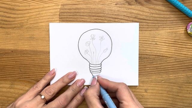 Рисунок черной ручкой "Лампочка" для начинающих | Милые и легкие картинки для детей и взрослых