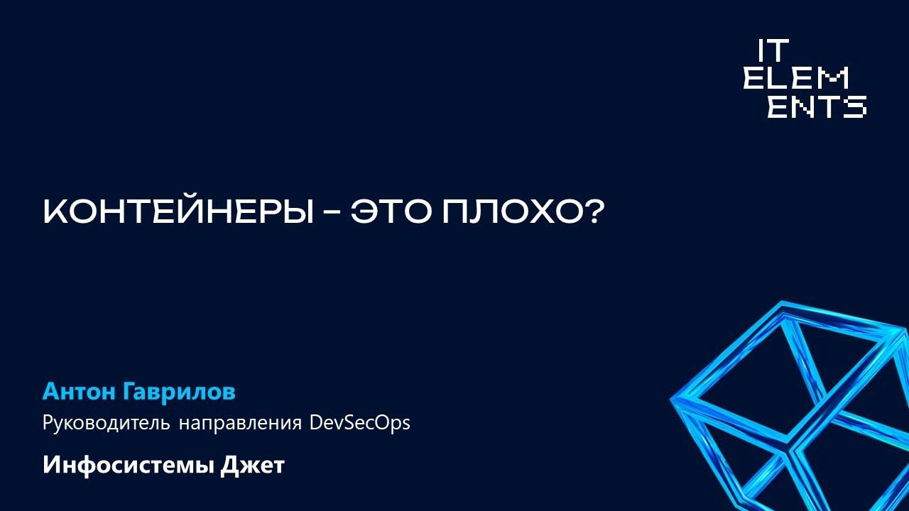 Антон Гаврилов, руководитель направления DevSecOps, Инфосистемы Джет Антон рассказал, как убедить безопасника, что Kubernetes — это не страшно. 02:15 Почему контейнеры — это плохо? 03:24 Контейнеры не безопасны 06:16 В контейнерах нет средств защиты 14:26 Подход к снаряду 18:38 Вывод