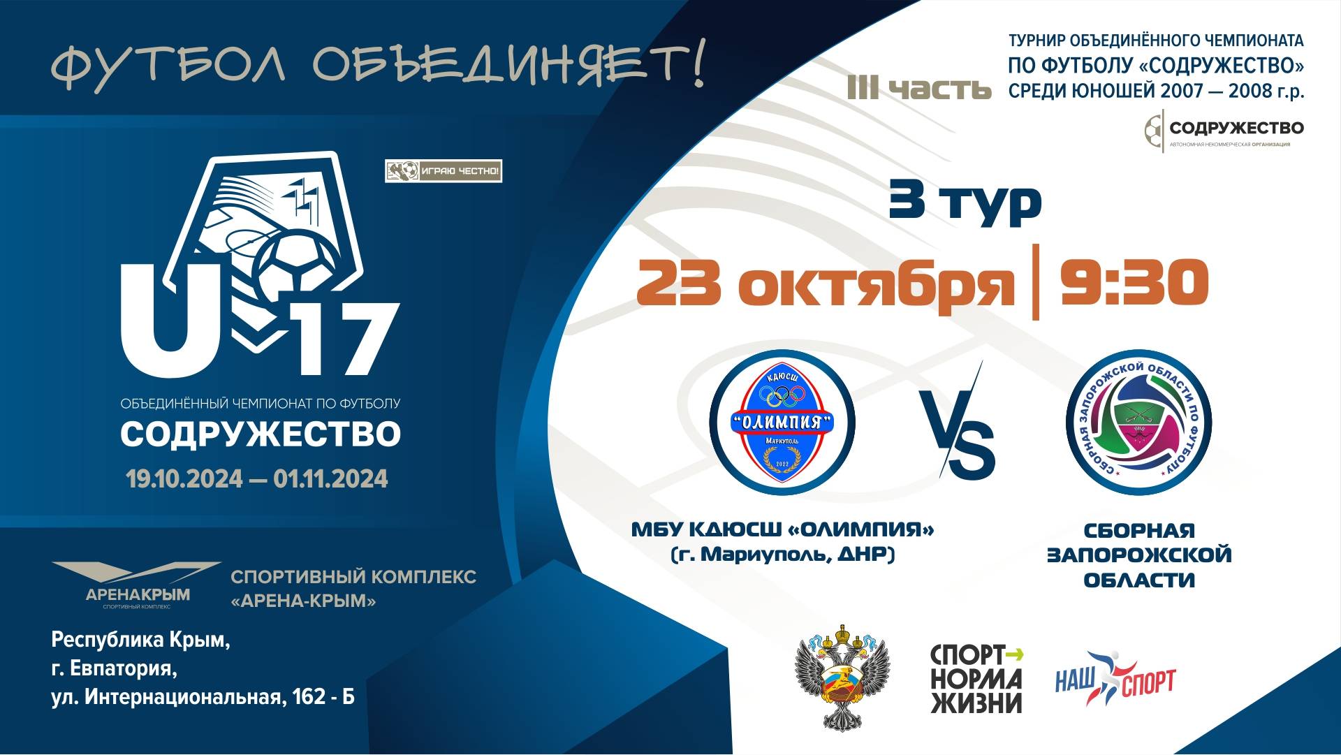 3 ТУР | U-17 | МБУ КДЮСШ "Олимпия" (г. Мариуполь, ДНР) vs Сборная Запорожской области