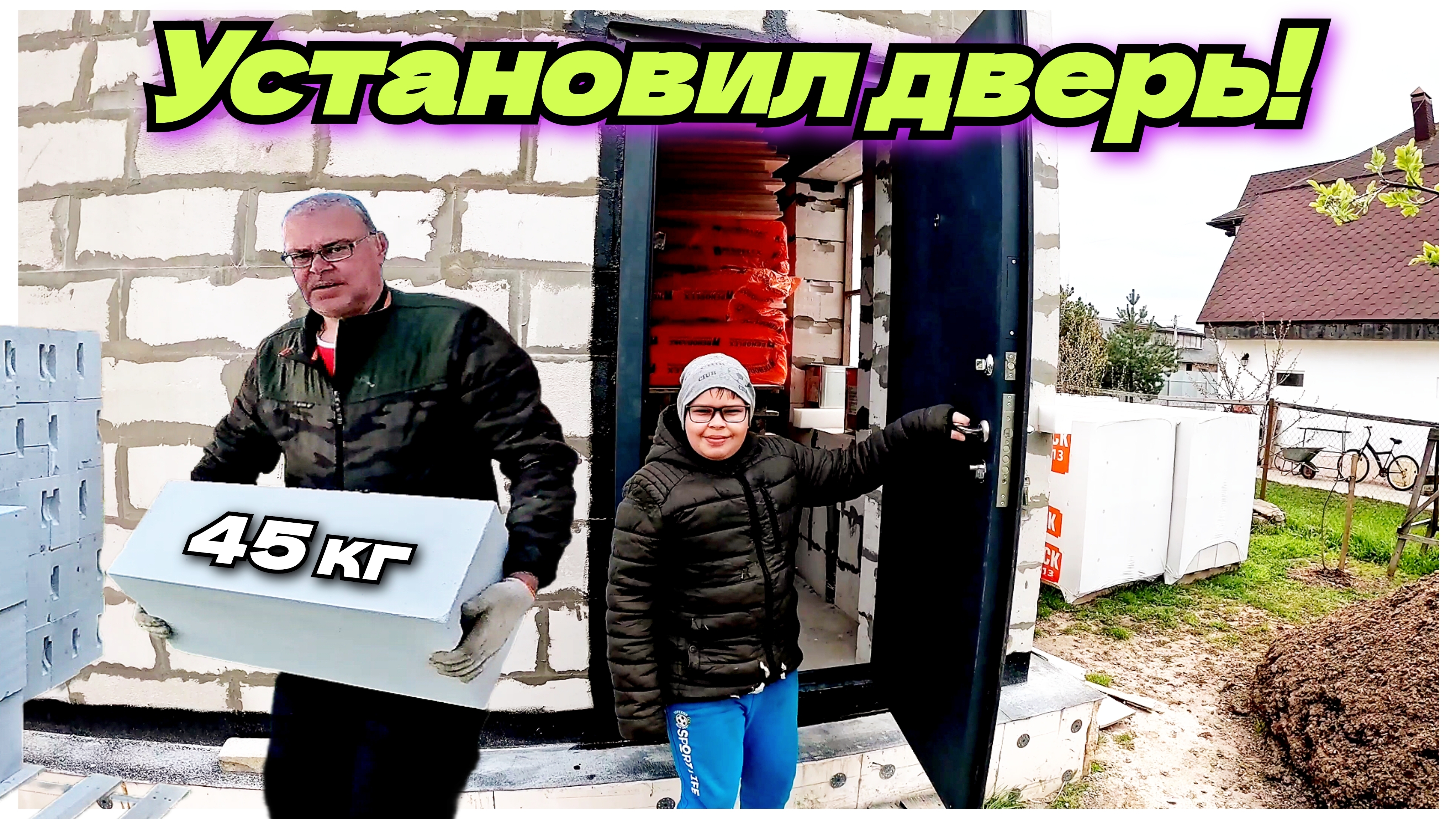 Расширяем проём под дверь. В одиночку поднял газобетон на второй этаж. Строю дом. Жизнь в деревне.