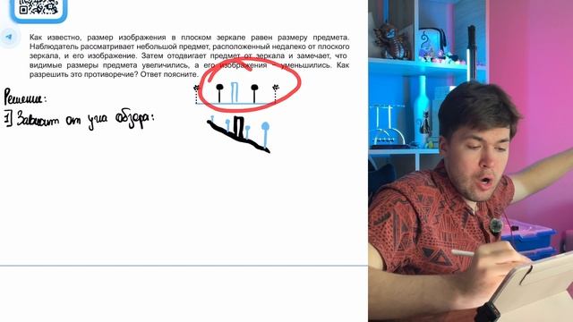 Как известно, размер изображения в плоском зеркале равен размеру предмета. Наблюдатель - №