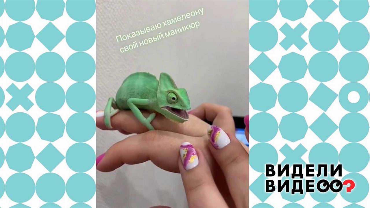 Хамелеон Гоша пришел в восторг от хозяйкиного маникюра.