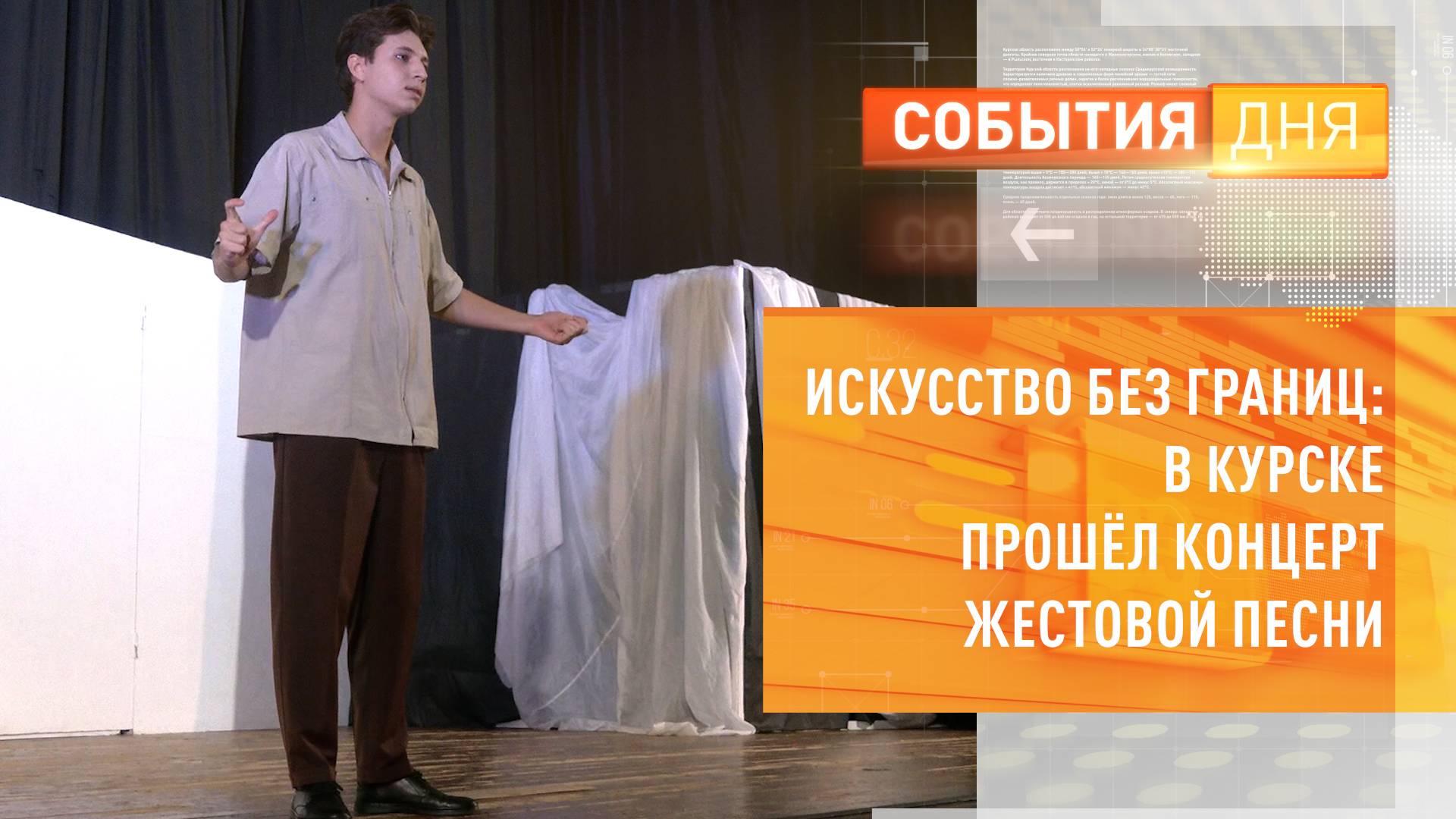 Искусство без границ. В Курске прошёл концерт «Песня в ладонях». Артисты экспериментальной театральной студии представили зрителям композиции из любимых советских фильмов и мультфильмов, произведения к 80-летию Победы. Все - на языке жестов. С необычным творчеством познакомилась и Анна Пучкова.