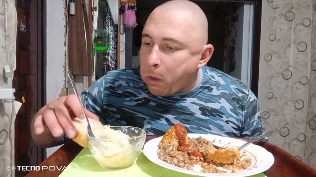 мукбанг/обжор/гречка с тефтелями в соусе,капуста квашеная/