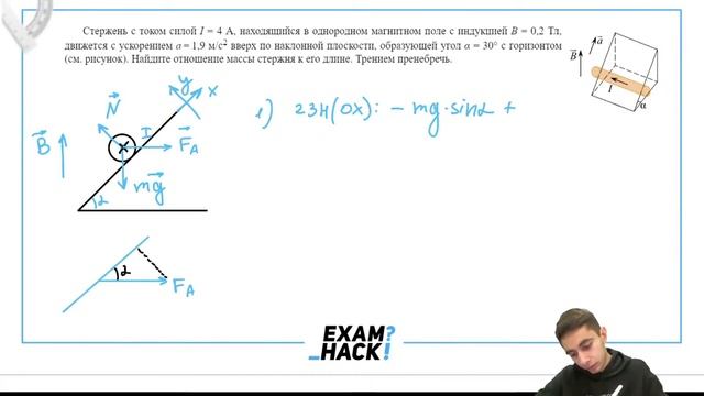 Стержень с током силой I=4 A, находящийся в однородном магнитном поле с индукцией B=0,2 Тл - №30663