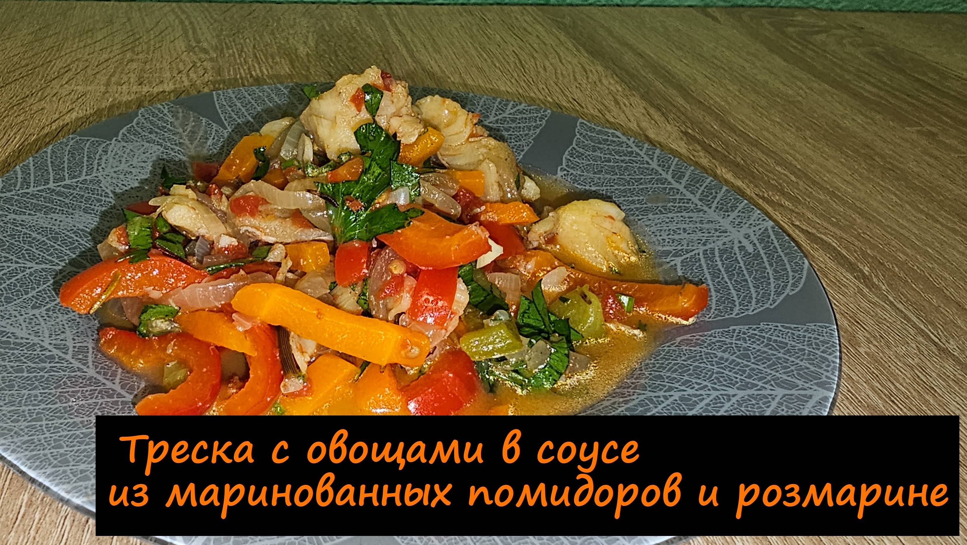 Треска с овощами в соусе из маринованных помидоров и розмарине/На второе/Рецепт № 238