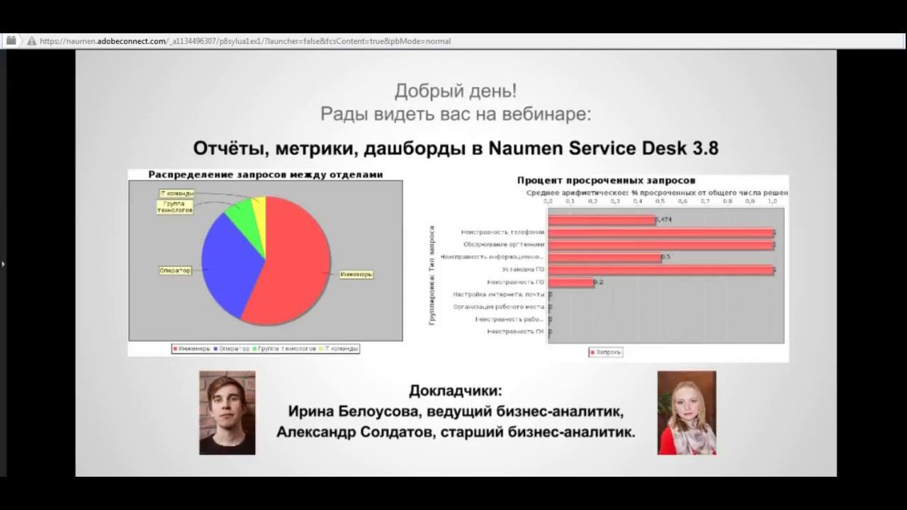 Компания NAUMEN провела мастер-класс, посвящённый инструментам создания и представления отчётов в Naumen Service Desk 3.8. В ходе нашего мастер-класса мы рассказали о возможностях генератора отчётов и о том, какими принципами нужно руководствоваться, когда Вы только приступаете к построению отчёта. Мы по шагам разобрали создание отчётов на нескольких примерах, в том числе на примере типовой метрики ITSM. Также мы показали несколько примеров графических отчётов и ответим на Ваши вопросы. Спикеры: Ирина Белоусова, ведущий бизнес-аналитик, Александр Солдатов, старший бизнес-аналитик, компания NAUMEN.