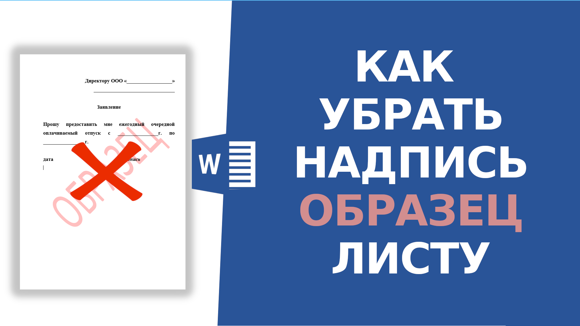 Как убрать слово ОБРАЗЕЦ в ворде