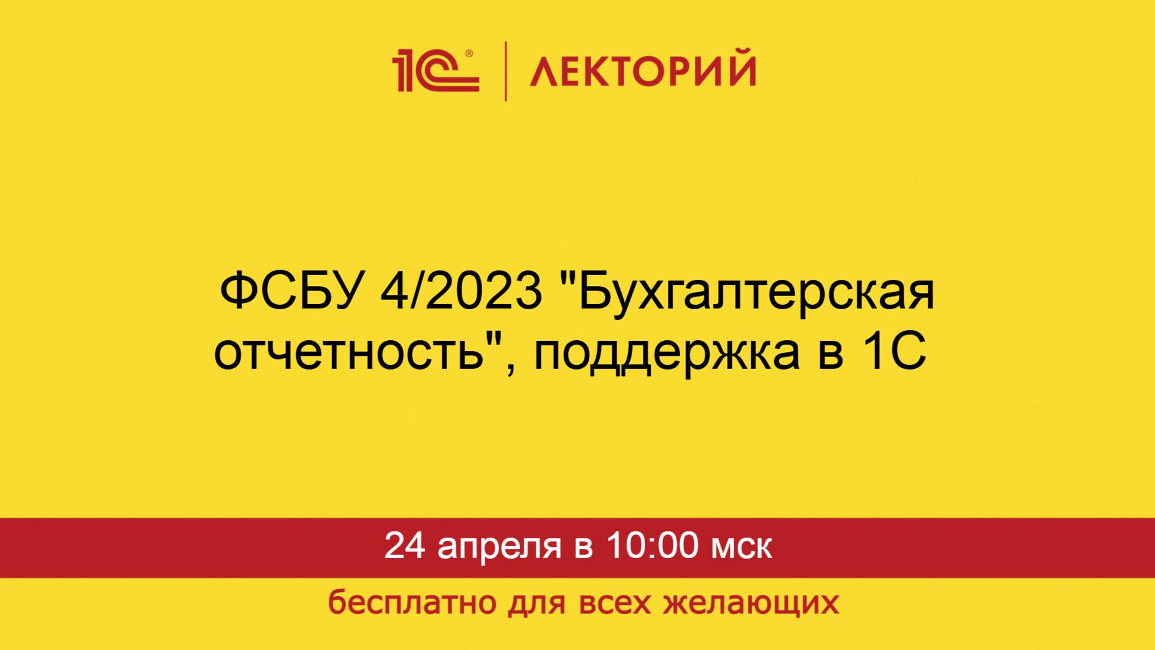 1С:Лекторий. 24.04.2025. ФСБУ 4/2023 "Бухгалтерская отчетность", поддержка в 1С