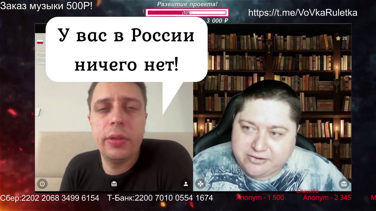 😱У НАС В РОССИИ НИЧЕГО НЕТ😲ЧАТ РУЛЕТКА С УКРАИНЦАМИ💥 Мой телеграмм канал:https://t.me/VoVkaRuletka Группа ВКонтакте:https://vk.com/vovkachatruletka Стримы тут:https://live.vkplay.ru/volodia.drujinin Поддержать проект материально: Донат::https://new.donatepay.ru/@1136780 Сбер(Владимир): 2202 2067 5570 6673 Тинькофф(Владимир):2200 7010 0554 1674 #чатрулетка #политика #развлечения #интервью #россия #украина #история #юмор #vovka
