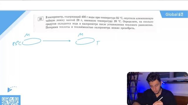 В калориметр, содержащий 400 г воды при температуре 85 °С, опустили алюминиевую чайную - №27925