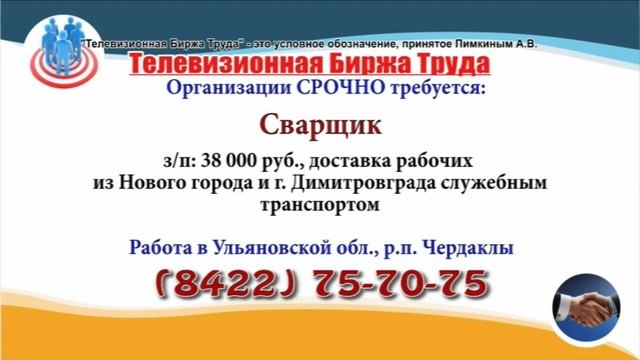 Вакансии и телефоны прямых работодателей в специализированной программе по трудоустройству "Телевизионная Биржа Труда" - г.Ульяновск