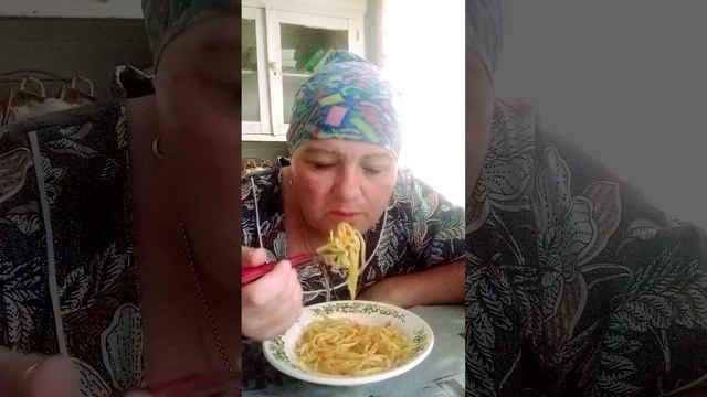 Перекус: макароны и огурчики !