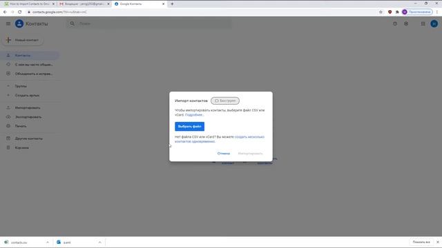 Как имипортировать контакты на Gmail для Windows?