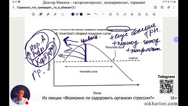 Незаметный источник хронического стресса: как похудение вызывает болезнь на популярных диетах. К положительным намерениям, используя гормезис, можно отнести похудение. Это один из тех видов стресса, когда достиг комфорта, но хочется добавить ещё несколько килограммов. И чем больше стараемся, заставляем себя, усердствуем, добавляем себе какие-то физические тренировки, тем хуже – ухудшилось самочувствие Начинается дефицит энергии из-за диеты и тренировок, работает фактор времени. Чем дольше длится истязание самого себя, тем ниже уходит человек от комфорта. Вроде как похудение это здоровое занятие, но усердие пересиливать свой организм, похудеть еще больше, начинает его убивать, на любом виде питания. Возьмём например низкоуглеводное питание. Сначала человек чувствует себя замечательно, худеет, работают активирующие гормоны: кортизол, адреналин. Потом хронически большое количество стимуляторов начинает своё отрицательное действие, и если дальше продолжать стремиться к идеалу, самочувствие может становиться ещё даже хуже, чем было до перехода на низкоуглеводное питание. Показатель неблагоприятного перехода это качество сна. Как только оно ухудшилось, пора пересмотреть поведение, прекратить похудение, может быть перейти на какое-то разумное количество углеводов. Не нужно впадать в догматизм и трезво оценить ситуацию, что гормезис проходит. Начинается стресс, который может погубить тебя. Комфорт перейдет в дискомфорт со многими симптомами. Последствия хронического стресса, гормоны активации, ухудшилось самочувствие, комфорт дискомфорт, польза стресса, вред стресса, улучшение здоровья, улучшение самочувствия, физическое состояние здоровья человека, стресс и здоровье человека. #Гормезис #ГормезисСтресс #ПохудениеСтресс #ГормезисБолезнь #ПохудениеДиета #ПохудениеДогматизм ===== Информация в данном видео предоставлена для ознакомления и расширения кругозора. Не является призывом к действию, НЕ заменяет консультации вашего лечащего врача. По вопросам вашего здоровья и возможных действий проконсультируйтесь с вашим медицинским профессионалом. ===== dr nik, doctor nikita, dr nikita, doctor nik, никита харлов ▶️ Полная лекция: Что такое ГОРМЕЗИС: Как оздоровить организм стрессом: зелёный чай, алкоголь, полифенолы, биофакинг? Возможно ли оздоровить организм стрессом https://www.youtube.com/watch?v=2QeZRrhRzRs 📘 Альбом: Что такое ГОРМЕЗИС: Как оздоровить организм стрессом: зелёный чай, алкоголь, полифенолы, биофакинг. Доктор Никита https://www.youtube.com/playlist?list=PLMLarg_xd_Mrj0I8lhnBzBxI46VUq7kj6 🩸Новый канал Доктора Ника https://bit.ly/DrNikNew ✅ Консультации с доком Никитой https://nikharlov.com/consult/ 💎Сайт Доктор Ник https://nikharlov.com/ 💧Лекция ЭЛЕКТРОЛИТЫ https://bit.ly/Na-K-Cl 🔑Лекция: Железо, Цинк, Медь, Витамин С https://bit.ly/CuFeZn-VitC ⭐️Лечебные лекции https://academy.nikharlov.com 💯Полезны