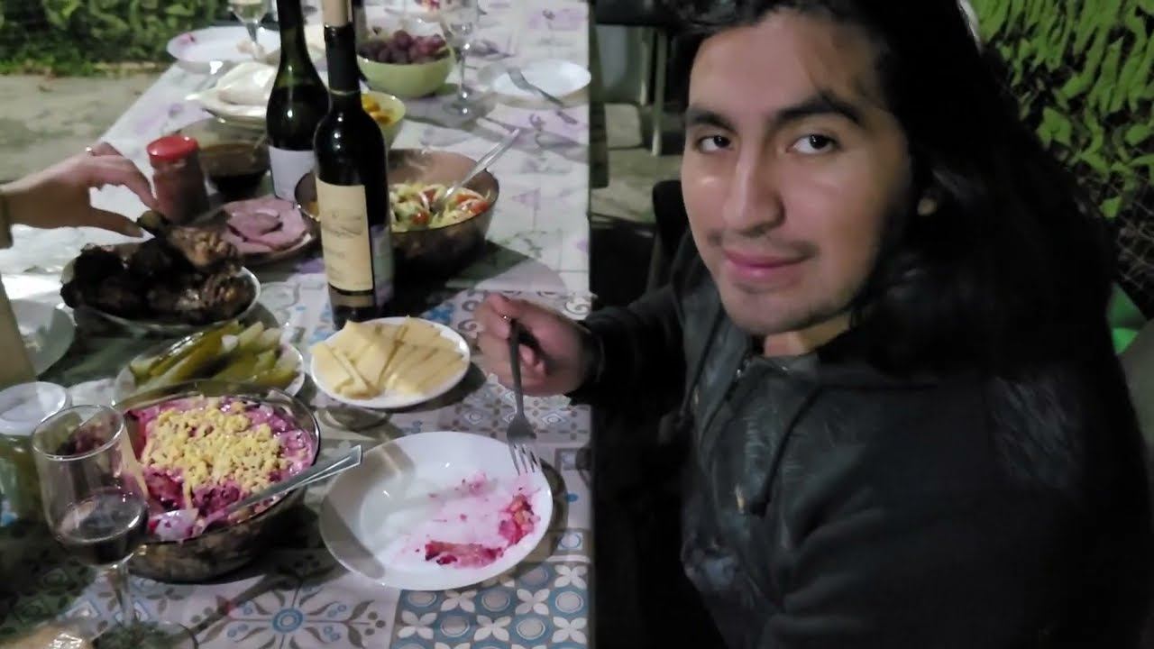 Чилиец Марко ест "селедку под шубой", его мнение о салате / Chileno come pescado crudo en Rusia