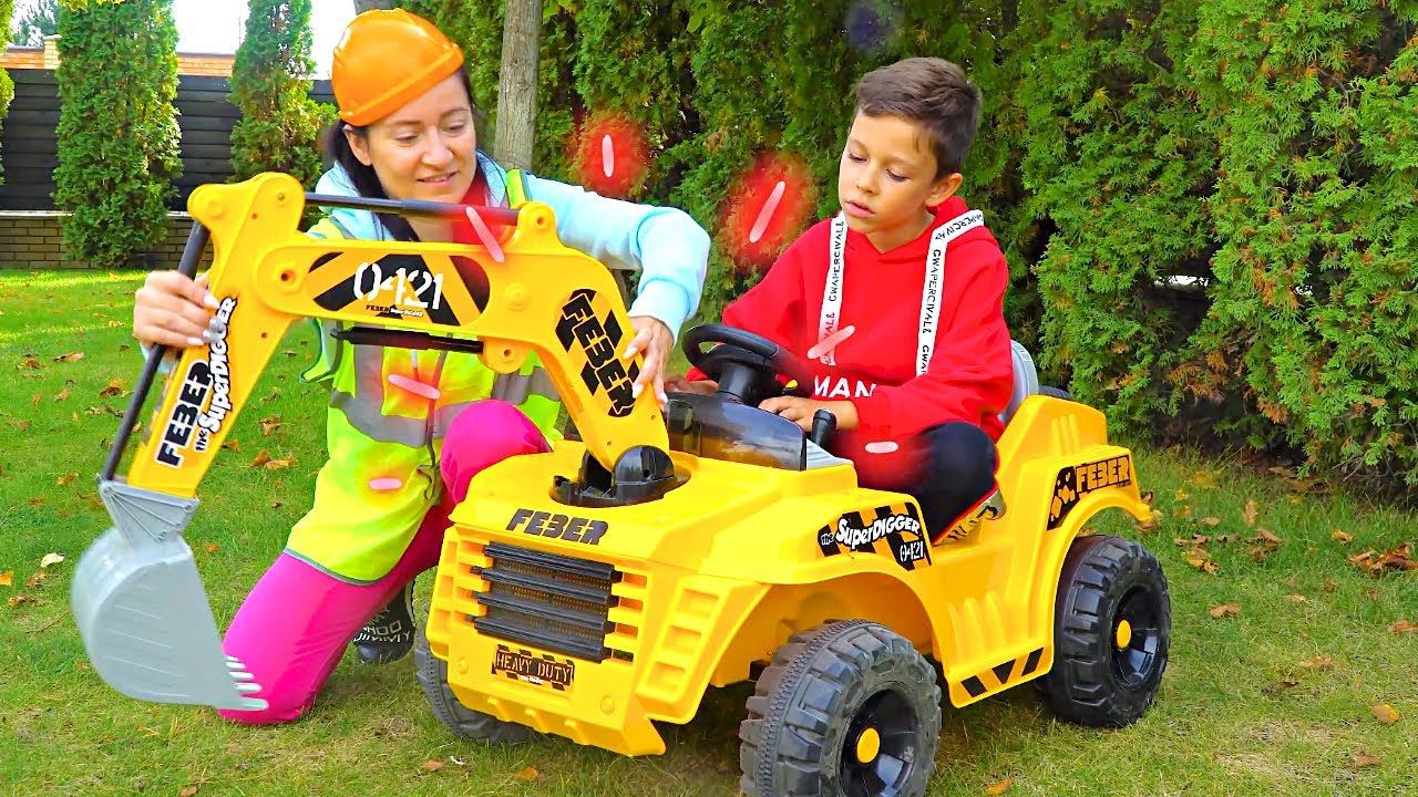 Артём и Мама играют с Трактором Экскаватором